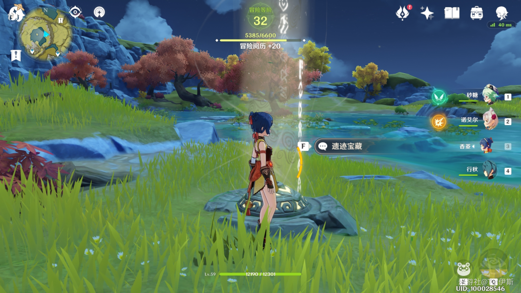 2、之后触摸第二个石碑,触发挑战,限时60秒到达山,风属性人物可以利用风场吹过去;