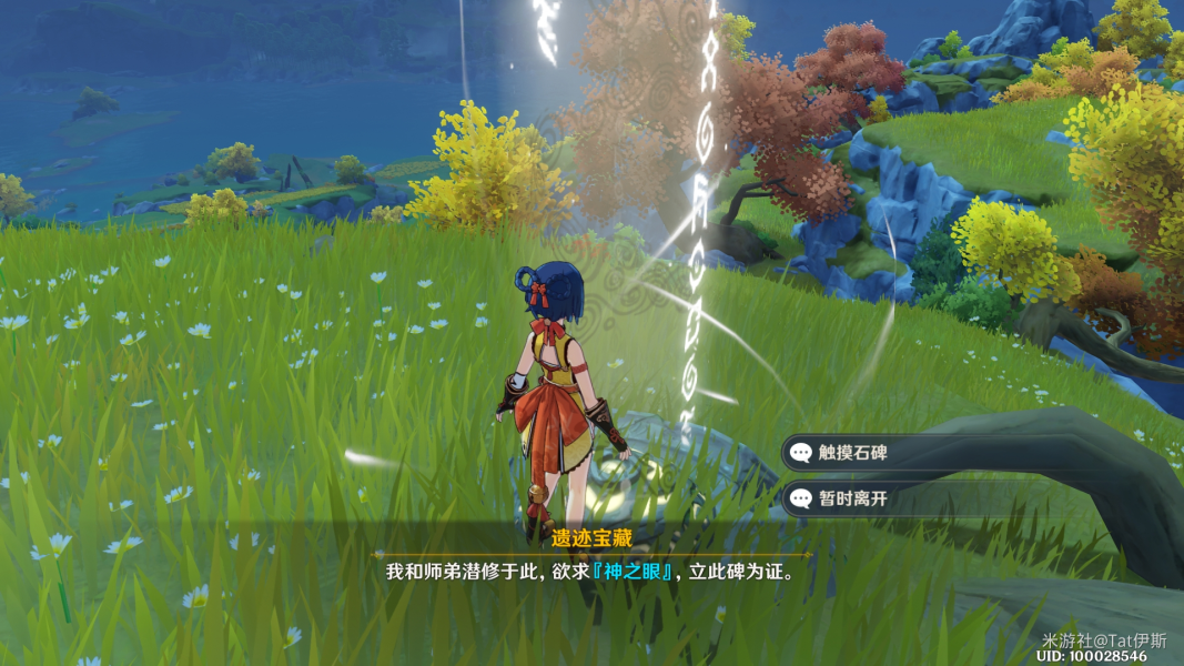 3、最后翻山过后,看到第三个石碑触发任务,回答三个问题后,要求2分钟内击杀38级丘丘岩盔王后获得宝箱奖励。